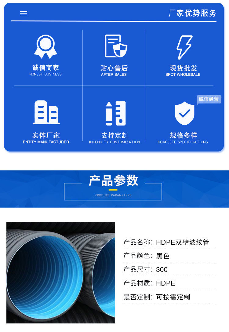 以上信息僅供參考,如果需要更多詳細信息,可以咨詢HDPE雙壁波紋管生產(chǎn)商或者賣家。